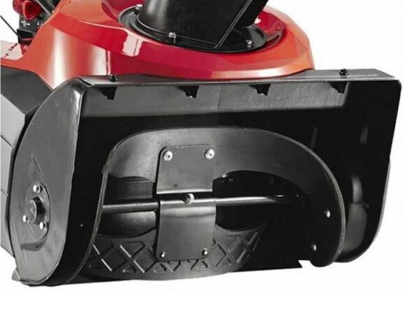 Интересно также, что данная модель является двухступенчатой, в отличие от тех, что описаны выше. Первая ступень — стальной шнек с зубчатыми краями, который служит для измельчения и сбора снега, а вторая — крыльчатка, выбрасывающая снег.